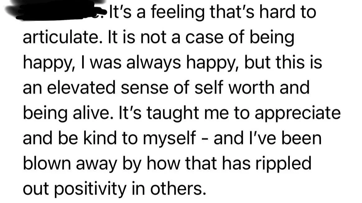 The impact on me has also positively influenced those around me, creating a ripple effect of positivity.”